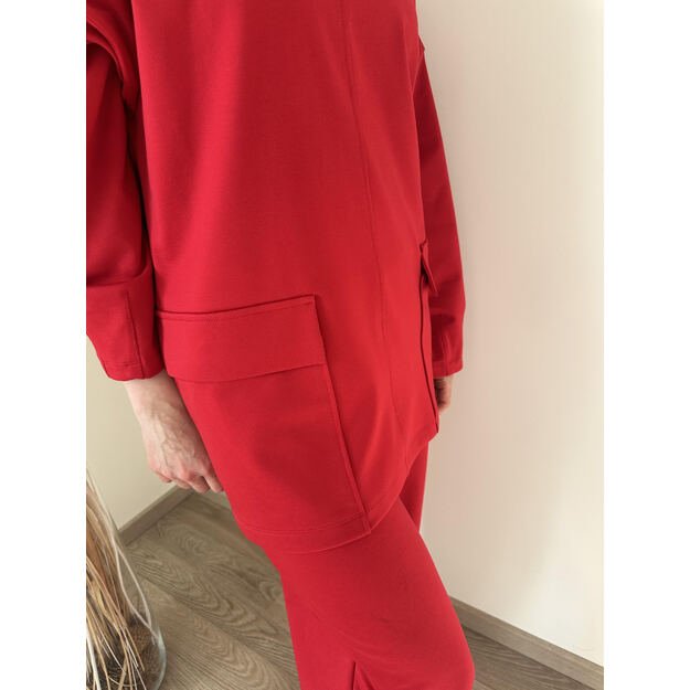 Šis stilingas dviejų dalių kostiumas - puikus pasirinkimas tiek kasdieniam įvaizdžiui, tiek ypatingoms progoms. Oversize tipo švarkas su kišenėmis suteikia modernumo, o platėjančios kelnės užtikrina laisvę judėti.